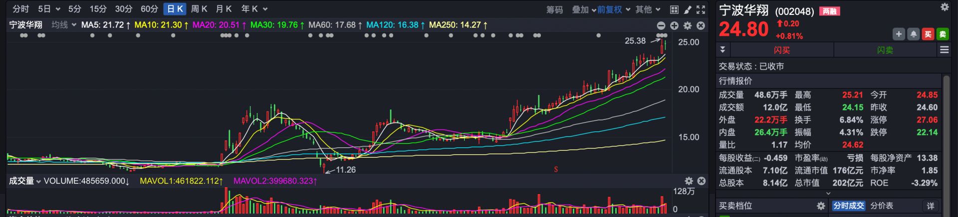 其次,宁波华翔,今年以来累计涨幅104%。中报显示,章建平二季度建仓615.85万股,为第八大流通股东。