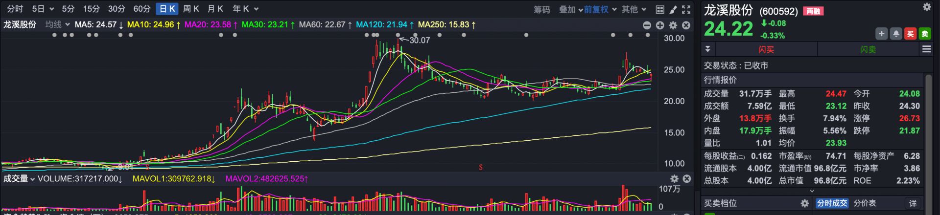 第三,龙溪股份,今年以来累计涨幅147%。中报显示,章建平二季度建仓521万股,为第五大流通股东。