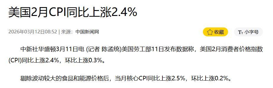 其实这份2月CPI报告已经失去时效性了,最大的问题就是漏掉了中东战争这个关键的冲击因素,根本没法作为决策参考。